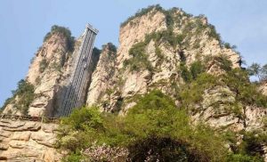 این اسانسور مسافرانش را تا ۳۳۰ متر بالای قله کوه در هانان چین می برد. این آسانسور غول پیکر میتواند تا ۵۰ نفر را همزمان به بالا بفرستد. این منطقه در چین سالانه ۵ میلیون گردشگر دارد و قبل از این آسانسو، گردشگرانی که مایل به کوه نوردی بودند مسیر ۳ ساعته را تا بالای کوه می پیمودند.
